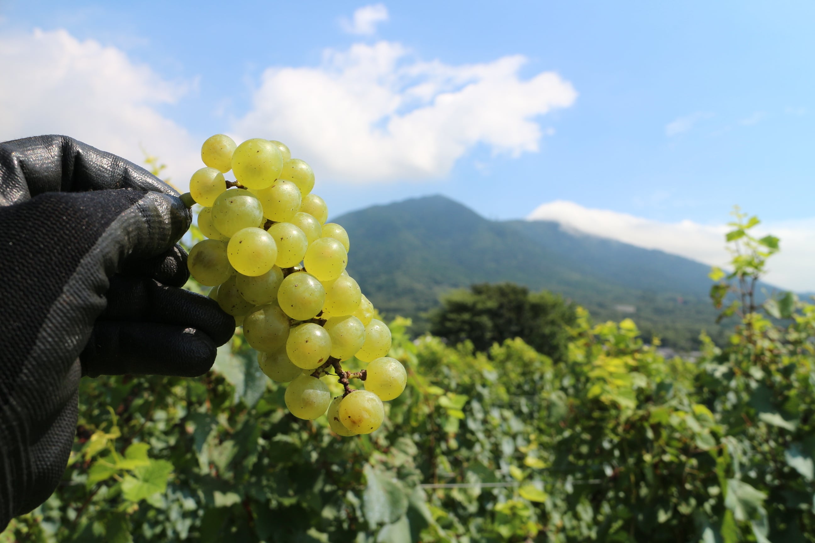 茨城県つくば市産ブドウ100%から造られた白ワインです。自園栽培の白ブドウ4種を全部混醸して造っています。